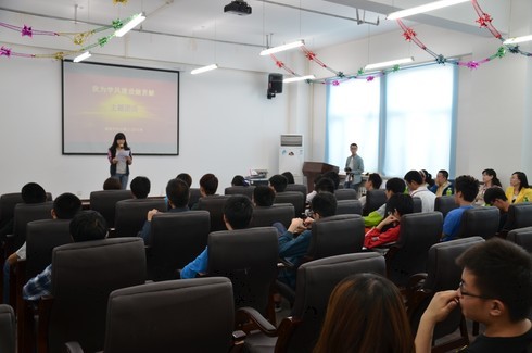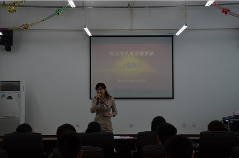 最后,校团委书记单鹂娜老师发表了热情洋溢的讲话,她首先祝贺传感12-2团支部的主题团日取得圆满成功,同时指出学风是大学精神和大学文化的重要组成部分,是一所学校的灵魂,是学生思想道德品质、学习精神和综合素质的重要体现,良好的学风对大学生养成严谨的治学作风、实事求是的科学态度具有重要影响,对大学生的成长成才具有重要意义。希望同学们从自身做起,确立大学学习目标,树立正确的学习态度,弘扬诚信、端正学风,以良好的精神风貌为我校学风建设贡献自己的力量。