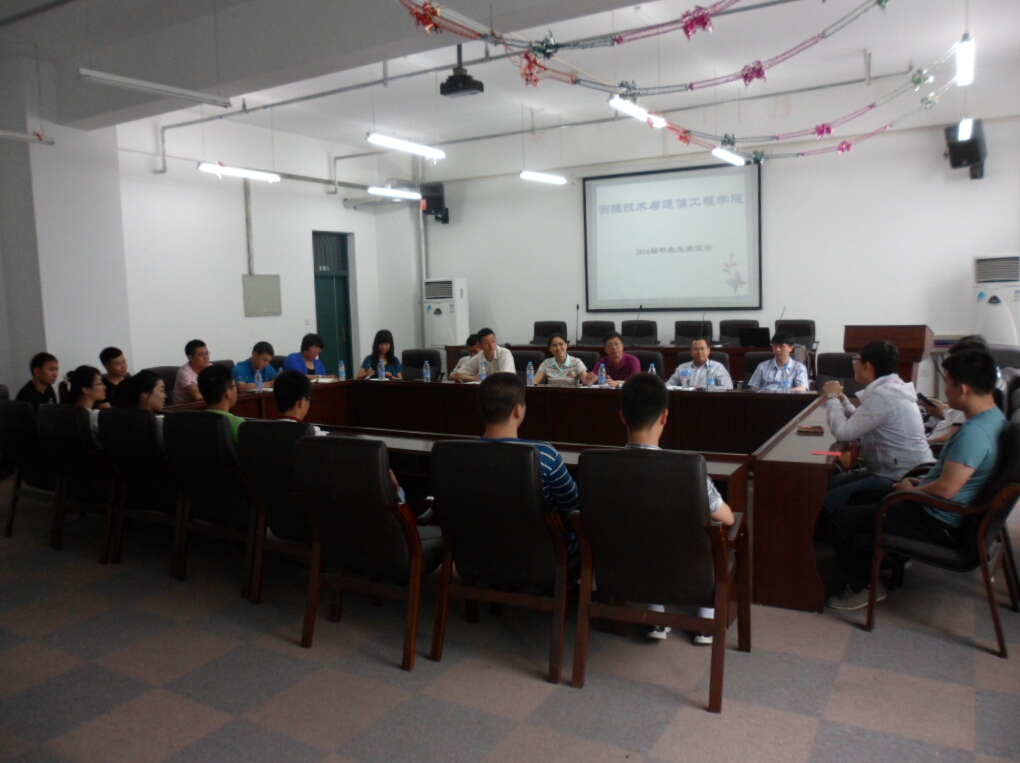 2014年6月10日上午,在西区新主楼E0904会议室,测通学院2014届毕业生座谈会顺利召开。经由各班推荐选派,我院测控技术与仪器专业,通信工程专业,安全工程专业等专业14位毕业生代表在会上发言,向学院倾诉自己的感悟心声。测通学院院长范剑英老师,党委书记顾大兴老师,副院长童子权老师,党委副书记兼副院长刘坤雁老师及各专业教师代表、辅导员代表出席本次座谈。