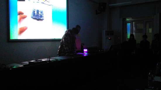 本次比赛以加强学风建设为宗旨,以提高大学生电子设计制作能力为目的,比赛内容既有程序设计,又有实际操作,以此全面检验参赛学生的理论基础和实践创新能力。大赛从策划至开赛历时一个月,共有14个作品参加了本次决赛。决赛中,首先由每组参赛队用实物和PPT对作品进行展示,随后评委组对十四支参赛队进行答辩,对结构创意、程序设计、电路原理、电路设计、PPT展示以及焊接方法进行详细的询问。随着比赛的顺利进行,各种造型奇异、炫彩夺目的彩灯设计纷纷登场亮相,各色彩灯不停变化,点亮了整个会场。第一组选手的作品就给了我们眼前一亮的感觉,他们制作的PPT打破了常规的传统,运用了现代网络幽默的元素,为我们展示了他们从选题到制作成品的艰辛历程;同时他们作品的外观也十分抢眼,酷似鸟巢的造型,炫酷的彩灯设计,打破了传统光立方的概念。随后由艺术学院与测通学院同学共同完成的以著名漫画《向左走,向右走》为故事背景的作品用彩灯的形式为我们生动的还原了漫画中的场景,博得了全场热烈的掌声。其他选手也依次上台展示,他们沉着冷静,从容解答,展现了当代大学生良好的精神风貌。