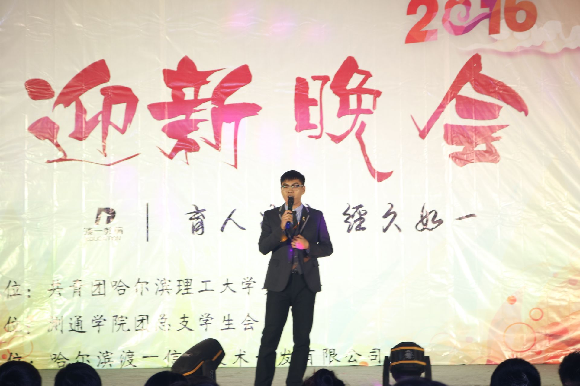 为迎接2016级新同学的到来,测通学院于2016年11月4日晚6点在西区1号楼0220报告厅举办了以“育人为渡,经久如一”为主题的迎新晚会。校团委副书记姜国玉,测通学院党委副书记刘坤雁、测通学院全体辅导员以及各兄弟学院团总支副书记和学生会主席莅临了本次晚会。
