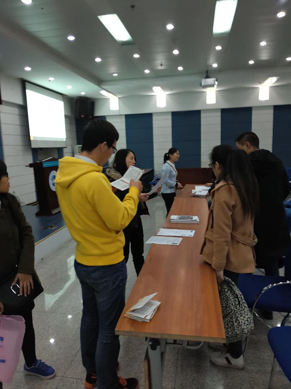 2017年4月11日上午8点30分一号楼多功能举行美国安费诺厦门分公司招聘宣讲会,该公司是第一年来我校举办宣讲会,此前一直与测通学院就业干事邬长明老师保持联系。本次主要目的是为了洽谈相关事宜,为以后的招聘会提供相关准备工作。测通学院辅导员姚春波老师,孙宇博老师,邬长明老师及部分应聘学生到现场与用人单位交流。