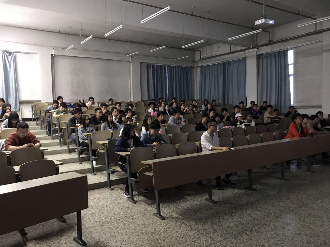2017年5月9日晚18点20分新主楼A502室,测通学院和计算机学院举办2018届本科毕业生首场招聘会,两个学院近100名2014级相关专业学生来到宣讲会现场,测通学院就业干事邬长明老师全程参与了宣讲活动。