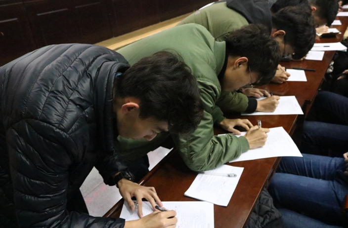 接下来,各年级安全信息员代表现场签订安全信息员承诺书。田书记在总结时指出,全院平安、稳定、和谐的班级环境需要靠每一位学生干部和安全信息员的共同努力。会后,要求各班班长带领本班全体安全信息员将本次培训会的内容消化理解并认真贯彻落实,肩负起安全信息员责任,为学校学院和谐发展做出自己应有的贡献。(摄影:姚春波)