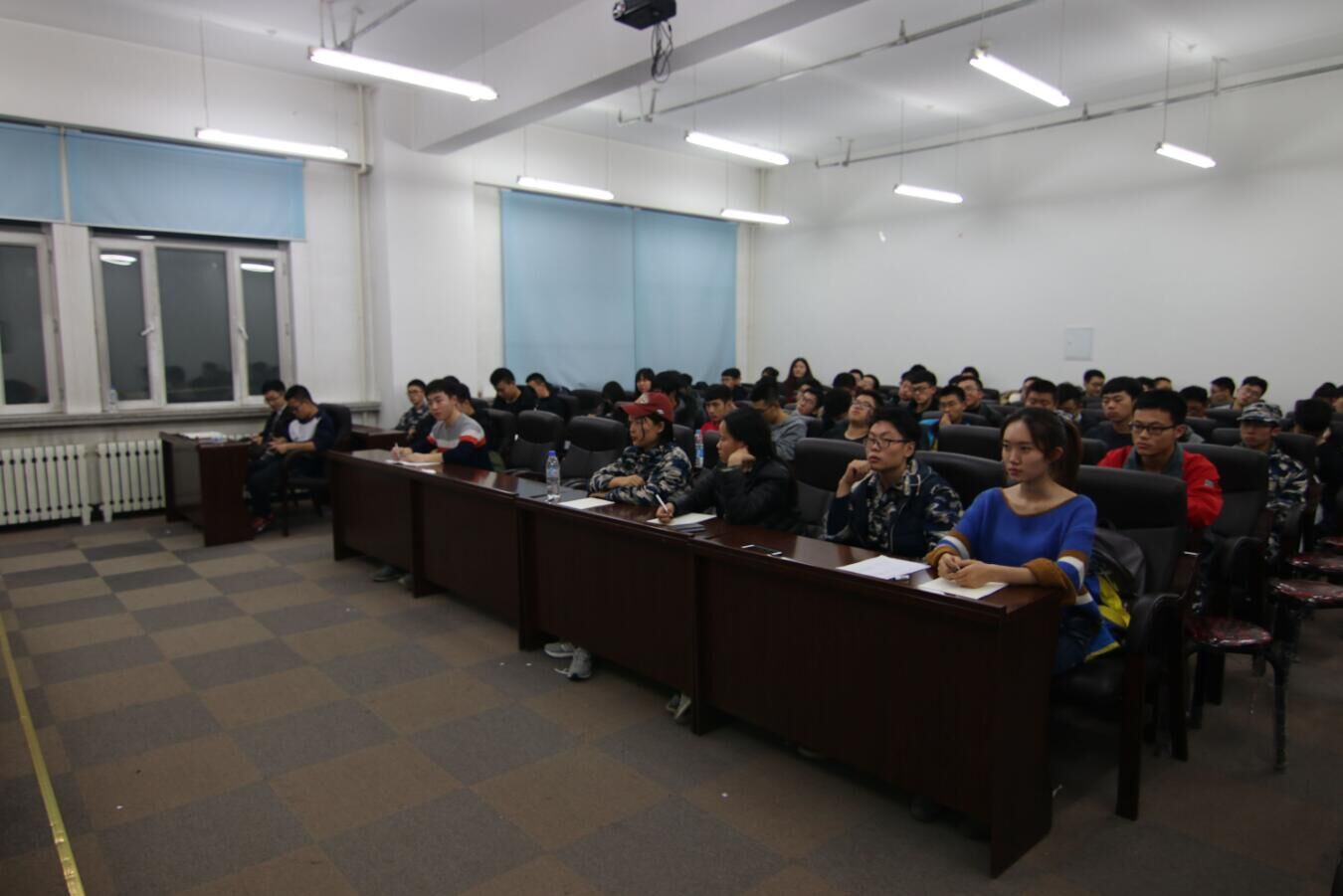 培训会上,首先由杨胜宝老师介绍了本次比赛的目的和意义以及赛程安排和奖项设置,并希望同学们在接下来半个月的备赛中,学到知识,结识友谊,力争取得更好的成绩。在随后的培训中,孙慧老师着重为同学们讲解了参加本次大赛所必须掌握的知识,其中包括:模拟电子技术、数字电子技术和单片机等方面的知识,在讲解的同时,孙老师也为同学们展示了前几届比赛的优秀作品,通过理论和实践的结合,使同学们对本次比赛有了更深入的了解。在最后的自由提问环节,同学们积极向老师提出了自己在设计中的困惑和问题,孙老师也一一做出了详细的解答,使参赛选手满意而归。