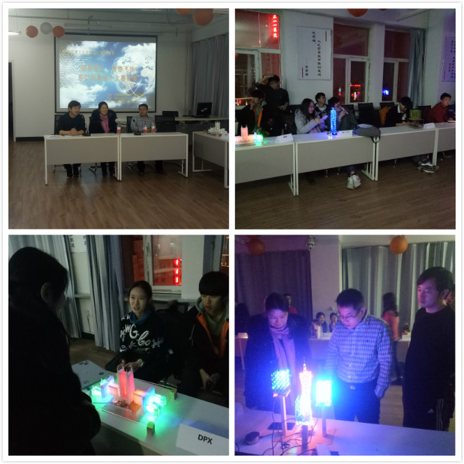 首先,田书记发表了热情洋溢的致辞,代表学院对本次比赛的顺利开展致以热烈的祝贺,并对工作人员和参赛选手表示感谢。她指出,“彩灯创意设计大赛”是我院科技活动的精品工程,是我院学子展现自我、张扬青春的舞台,希望同学们在比赛中,将专业知识和创新思维有机契合,塑造出优秀的作品。随后所有参赛选手将作品逐一展示,其中的3D理工大厦模型,绚丽多彩的"广州塔",变幻多样的光立方等作品深受评委老师好评。经过层层选拔,最终DPX、TRI、攀岩等队伍成功晋级决赛。