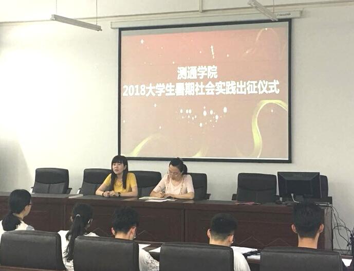 7月18日下午15:20,测通学院2018年暑期社会实践出征仪式暨实践培训会在新主楼E0904举行。社会实践指导老师张丽红及学院社会实践小分队成员参加此次仪式,仪式由张丽红老师主持。
