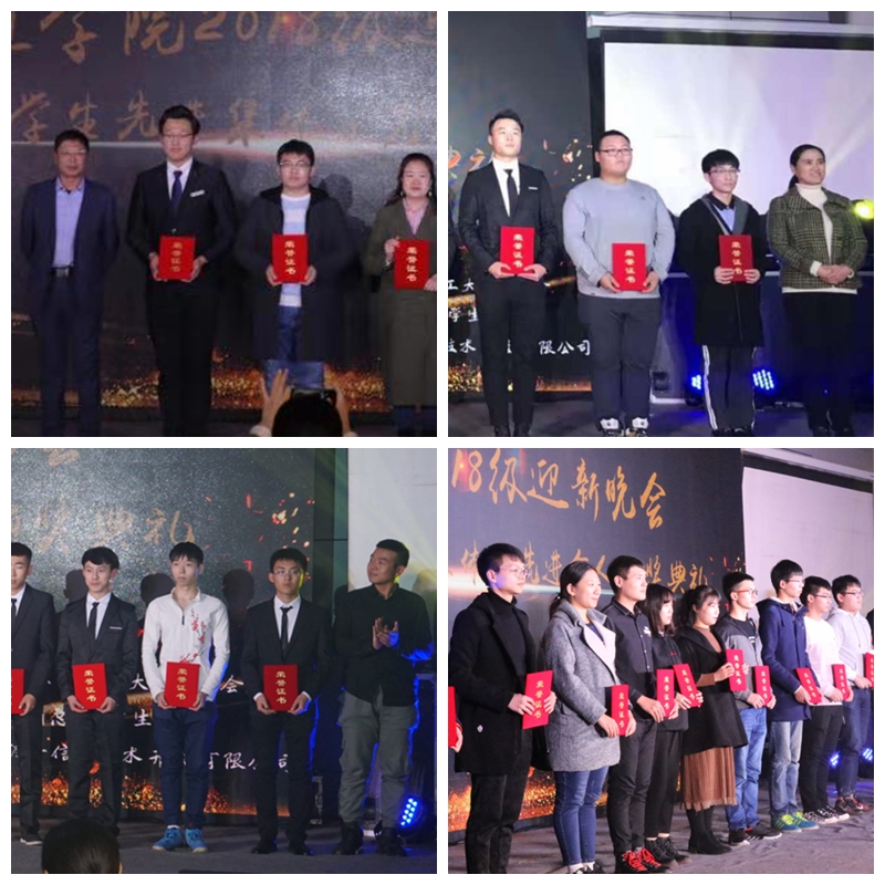 晚会现场同步进行了2017-2018年度学生先进集体和先进个人表彰颁奖典礼。我院院长范剑英、院党委书记顾大兴、校团委张奇分别为我院2017-2018年度先进集体代表、2017-2018年度校友自强奖学金代表、儒苑奖学金代表、仪表人才奖学金代表、国家奖学金代表和2017-2018年度我院模拟求职大赛优秀选手、学霸个人优秀代表、优秀党员代表、暑期社会实践先进个人代表进行了表彰颁奖,以此鼓励先进典型,充分发挥朋辈引领的模范带头作用。