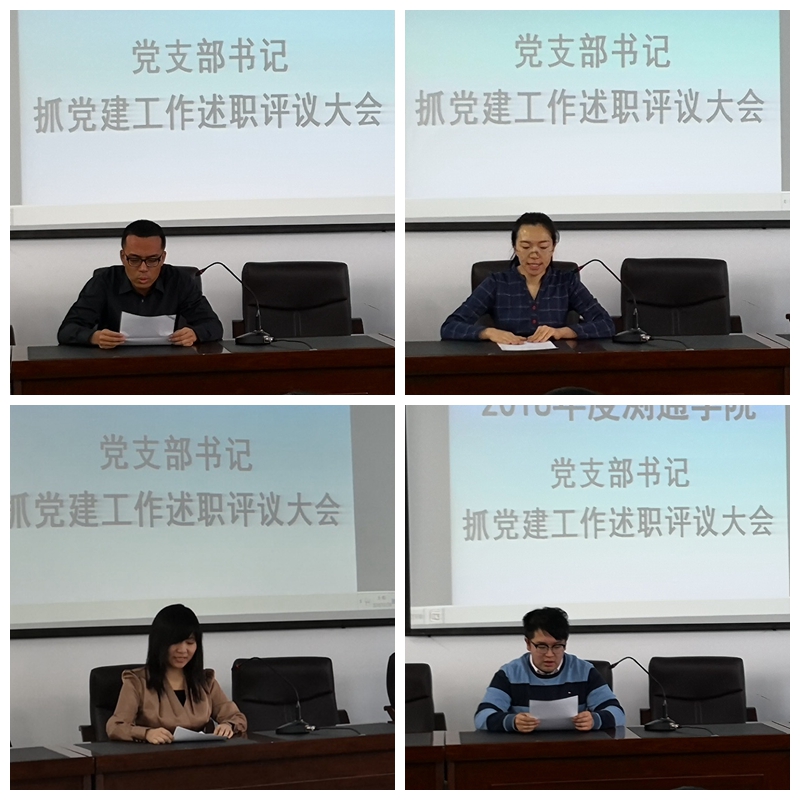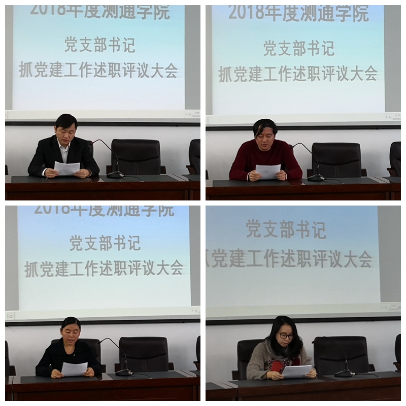 会上,14位教师党支部书记和学生党支部书记依次进行了述职报告,对履行基层党支部书记责任情况、支部工作开展情况,支部服务学校、学院情况以及改进党建工作的思路和措施进行了汇报。
