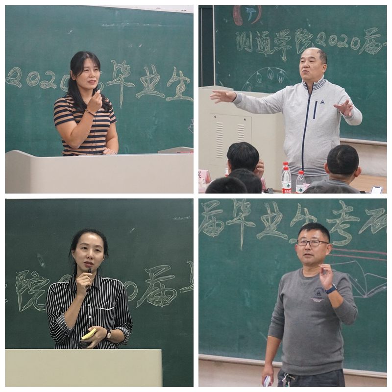 首先,学院副书记田海燕通报了近两年学院的整体就业和考研情况,分析了当前就业和考研形势,阐述报考我校研究生的优势条件,希望同学们降低期望值,合理定位,积极行动,在考研和就业方面提高成功率。罗中明老师从专业特点的角度,详细讲述了测控系专业学科优势,分析了国内众多院校测控专业的优势和不足,倡导考研学生合理定位,根据自己能力与水平报考与之相匹配的大学研究生。李继征老师介绍了通信专业以往部分毕业生就业情况,结合我院通信专业毕业生实际就业特点,倡导更多的毕业生要把目前重心任务放在找工作上,考研要理性选择报考院校。马德仲老师通过麦肯锡咨询公司的安全工程毕业生就业数据分析,倡导安全系毕业生要对专业充满信心,解放思想,开拓思维,不断努力,最终会收获满意的结果。企业人资经理郭昊重点结合简历制作、网上素质测评和无领导小组讨论等面试环节注意事项及考核要点对毕业生进行就业指导,内容极具针对性。邬长明讲解了重视秋季校园招聘的几条原则及考研过程的注意事项,倡导学生抢前抓早,精心准备,不断总结,群策群力,共同促进2020届毕业生高质量就业。