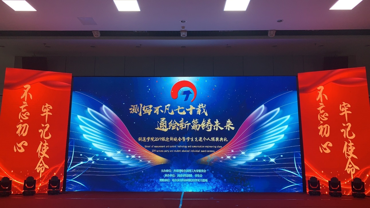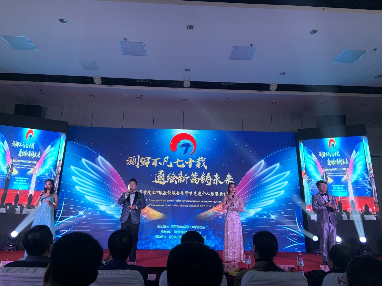 金秋风景如画,十月天高云淡。在这收获的季节里,测通学院迎来了2019级莘莘学子,为欢迎新同学的到来,展现同学们的青春风采,10月24日18:00,由校团委主办,测通学院团委、学生会承办,哈尔滨科林明伦软件实习基地赞助的“测写不凡七十载,通绘新篇铸未来”为主题的测通学院2019级迎新晚会暨先进个人颁奖典礼在我校西区一号楼0220报告厅隆重举行。哈尔滨理工大学宣传部部长周长群、测通学院院长范剑英、院党委书记顾大兴、副院长吴海滨、副书记田海燕、教师童子权、测控系主任盖建新、院办主任崔国光、19级新生班主任、全体辅导员老师出席了本场晚会,校学生会主席团、各兄弟学院团委副书记、学生会主席团成员、测通学院全体新生出席并观看了演出。