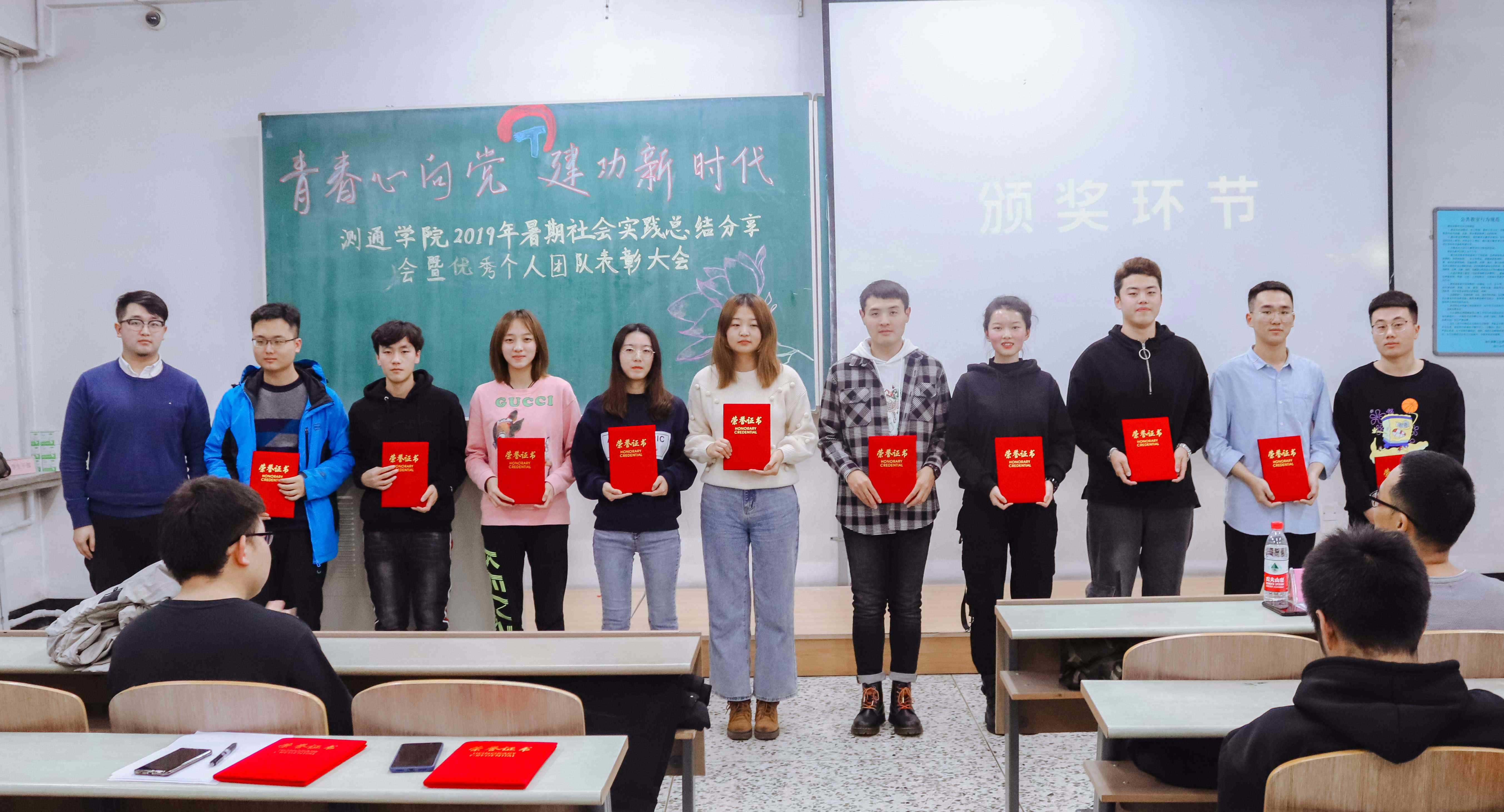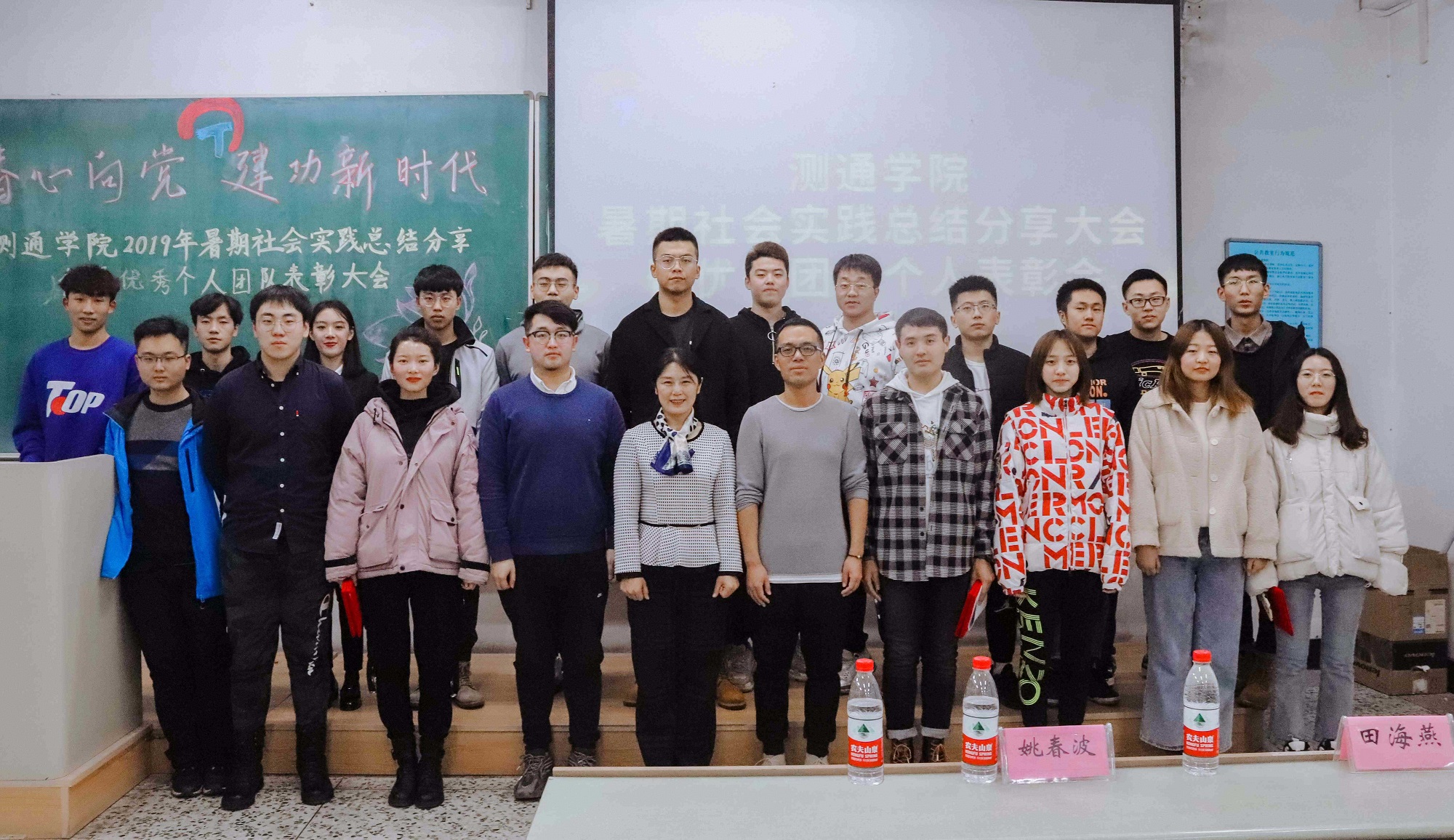为深入学习宣传贯彻习近平新时代中国特色社会主义思想和党的十九大会议精神,积极响应校团委关于大学生暑期“三下乡”社会实践活动号召,践行创新发展理念,测通学院于2019年11月22日晚6:00在西区新主楼J403开展了“青春心向党·建功新时代”为主题的2019年暑期社会实践总结表彰大会。测通学院党委副书记田海燕、院团委书记姚春波、学生会指导教师张德龙、学院各团学组织负责人及2019级百余名学生参加经验分享会。