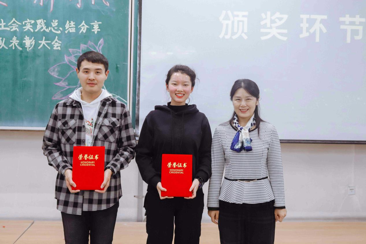 学院党委副书记田海燕为“中国大学生自强之星”、黑龙江省“十大杰出青年志愿者”标兵毕轩和研究生支教团优秀志愿者吴静谊颁发证书