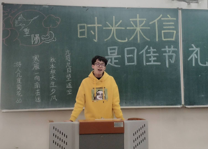 在写信之余,还组织同学们表演了节目,关于重阳节的诗朗诵和演讲,对亲人表达思念的歌曲等等,同学们都深有感触。