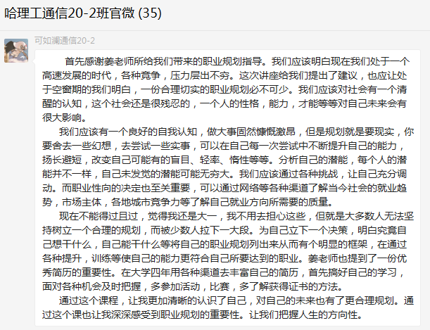 本次活动有利于2020级学生明晰职业生涯规划意识,进一步激发学习的内生动力,更好的利用假期进行人生规划;有利于2018级学生明确努力方向,提高就业准备工作的针对性和实效性,为即将到来的就业招聘做好思想准备。