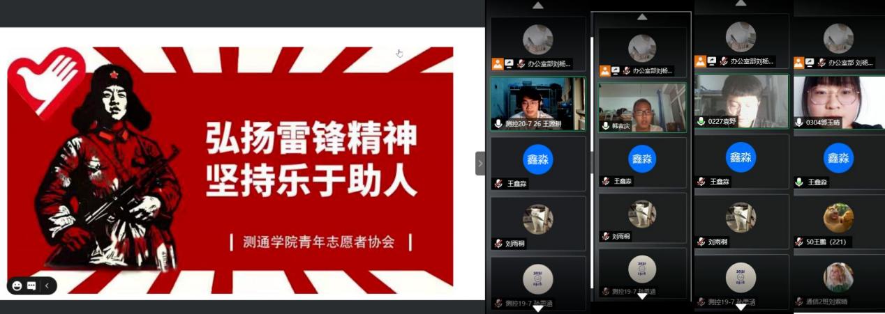 今年是毛泽东同志题词“向雷锋同志学习”58周年,也是中国共产党成立100周年。为弘扬和践行雷锋精神,大力弘扬中华民族传统美德,鼓励同学们学习“奉献、友爱、互助、进步”的志愿服务精神,测通学院青年志愿者协会于3月20日晚上19时开展了以“弘扬雷锋精神、坚持乐于助人”为主题的线上学习活动。