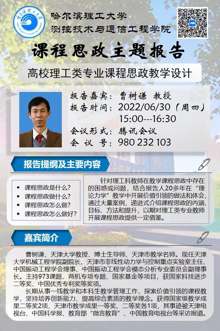 报告题目:高校理工类专业课程思政教学设计