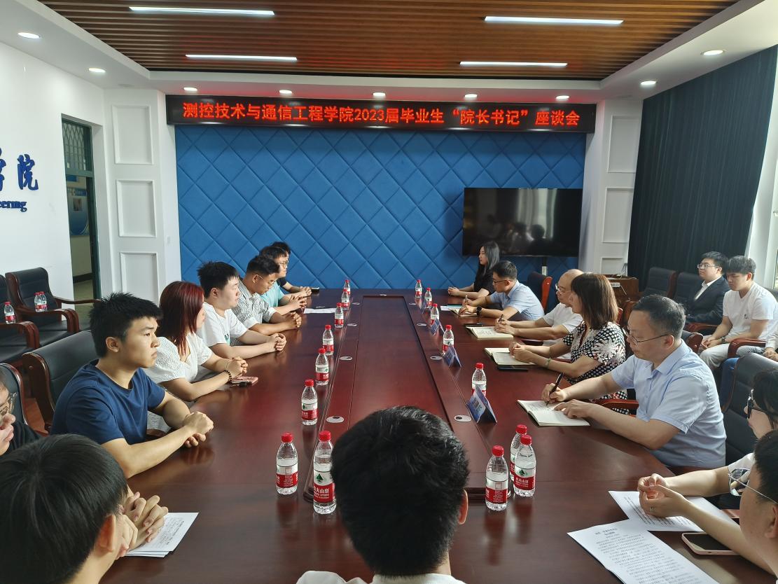 为进一步推动学习贯彻习近平新时代中国特色社会主义思想主题教育走深走实,倾听毕业生心生,留下毕业生对学校、学院发展和建设方面的宝贵意见和建议,提高学院育人和人才培养水平,6月14日,测控技术与通信工程学院2023届毕业生“院长·书记”座谈会在新主楼E1025举行,学院院长吴海滨、党委书记黄春丽、党委副书记张宏磊、副院长盖建新和学院各专业毕业生代表参加座谈。会议由党委副书记张宏磊主持。