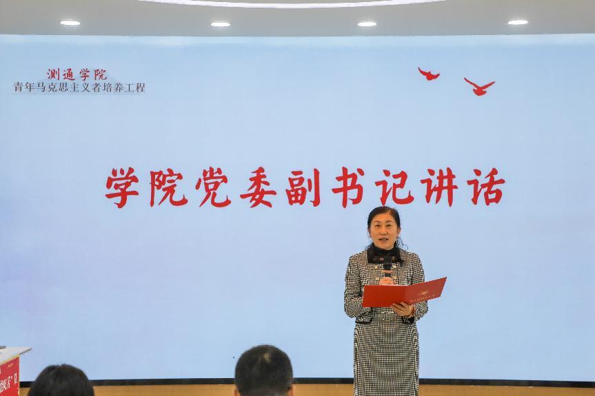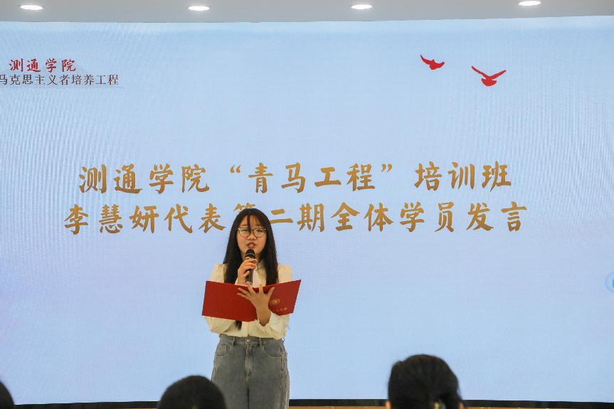 仪式在庄严的氛围中拉开序幕。第二期学员代表李慧妍首先发言,她深情回顾了在“青马工程”培训班为期一年的学习历程,分享了在理论学习和实践锻炼中的收获与成长,表达了对学院培养的感激之情以及对新学员的诚挚祝福。
