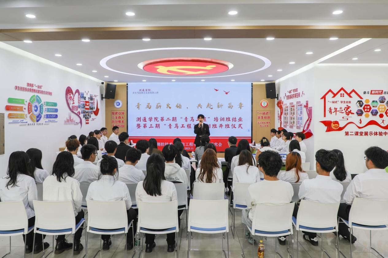 11月3日,测通学院第二期“青马工程”培训班结业暨第三期开班仪式在学校一站式学生社区隆重举行。学院党委副书记杨芳、相关辅导员老师以及第二期、第三期“青马工程”培训班全体学员参加了仪式。仪式由柳涵同学主持。