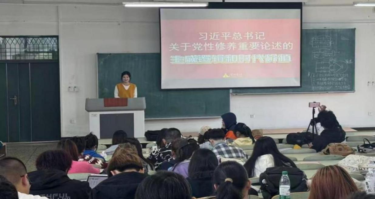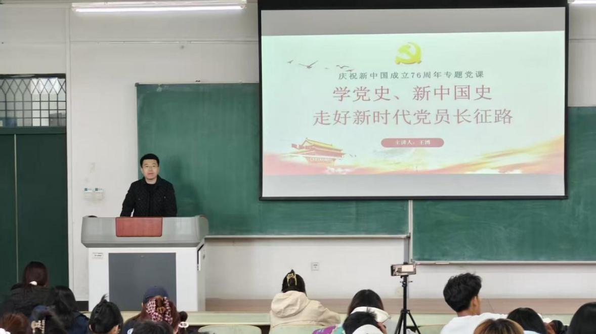 10月11日,辅导员王博老师讲授《学党史、新中国史 走好新时代党员长征路》专题党课。课程围绕党史、新中国史的主线脉络,引导青年学生深刻把握党的奋斗历程和伟大成就,掌握党的基本理论和基本知识,坚持“四个结合”,提升学习党史、新中国史的理论自觉与实践能力。