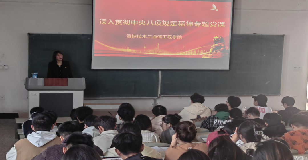10月9日,测通学院党委书记黄春丽讲授《深入贯彻中央八项规定精神学习教育》专题党课。围绕全面贯彻落实中央八项规定精神的重大意义和实践要求展开,引导学生持续深化党的创新理论学习,做到学思用贯通、知信行统一,切实将习近平新时代中国特色社会主义思想转化为坚定理想、锤炼党性和指导实践、推动学习的强大力量。